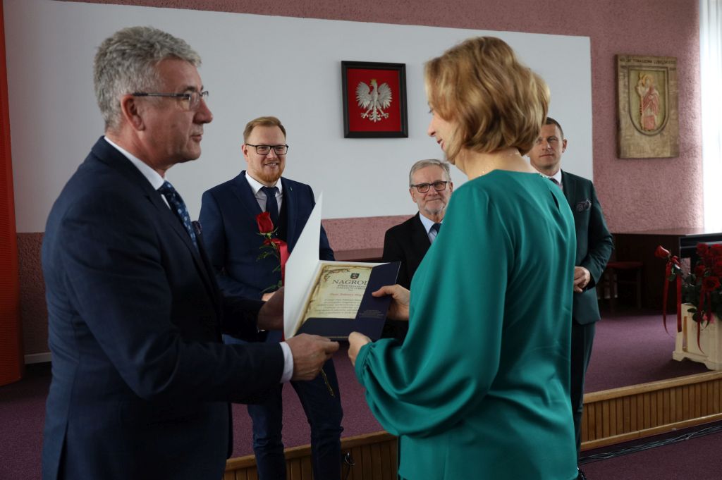 Burmistrz Miasta witając zebranych podziękował jednocześnie za ich pracę i trud włożony w wychowanie młodego pokolenia. Następnie wręczył nauczycielom Nagrody Burmistrza Miasta Tomaszów Lubelski za ich osiągnięcia w zakresie pracy dydaktycznej, wychowawczej i opiekuńczej, w tym realizacji zadań związanych z zapewnieniem bezpieczeństwa uczniom w czasie zajęć organizowanych przez szkołę oraz realizacji innych zadań statutowych szkoły.